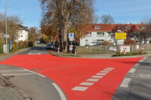 Das ging dann gleich mal schief: Die Einmündung der Madeleine-Ruoff- in die Rieder Straße, eine der gefürchteten Radfahrerfallen, sollte durch