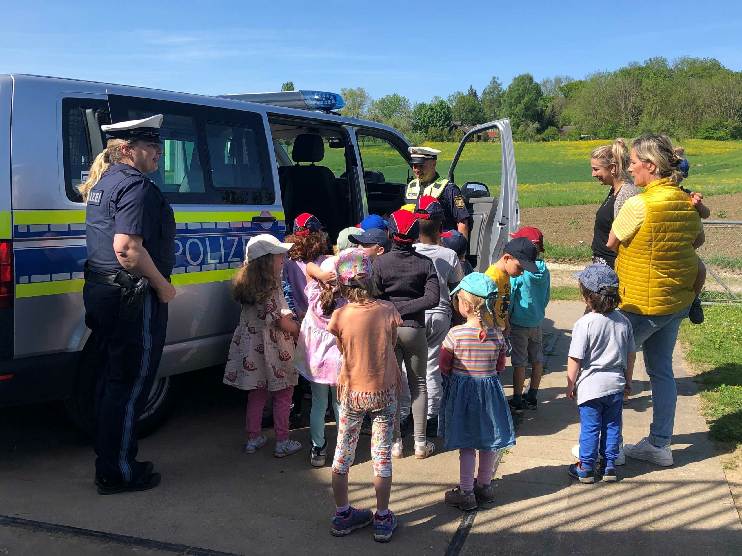 Für freudige und aufgeregte Stimmung im Inninger Gemeindekindergarten sorgte kürzlich ein Besuch von Beamten der Polizeiinspektion Herrsching mit einem Streifenfahrzeug. Die Beamten erzählten den Kindern aus dem Arbeitsleben der Polizei. Noch mehr Spaß machte es jungen Staatsbürgern, das Polizeifahrzeug genau anzugucken. Zum Abschluss gab’s noch paar praktische Übungen für den Straßenverkehr. Manche Kinder, so erzählten die Erzieherinnen und Erzieher, waren vor dem Besuch so aufgeregt, dass sie schon die Nacht zuvor nicht mehr schlafen konnten. Auf dem Bild Polizeihauptmeisterin Klemm und Polizeihauptkommissar Schäffler, umringt von einer Schar Kinder. Klar, dass da in manchem Kind der Wunsch aufkeimt, auch mal Polizist werden zu wollen.