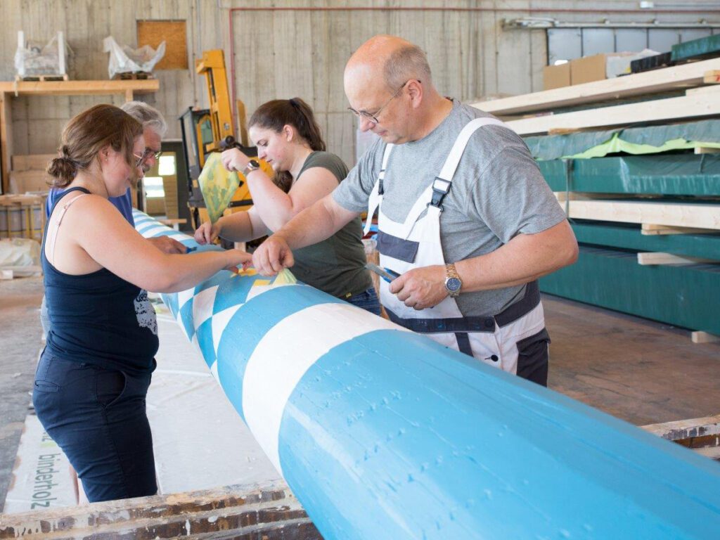 Der Baum, den die Trentiner Freunde als Maibaum auserkoren hatten, fand keine Bestätigung durch die Herrschinger Experten – er war schon ziemlich hohl. Deshalb organisierte Darchinger einen passenden, gesunden Stamm aus dem Allgäu, der dann nach Ravina transportiert wurde.