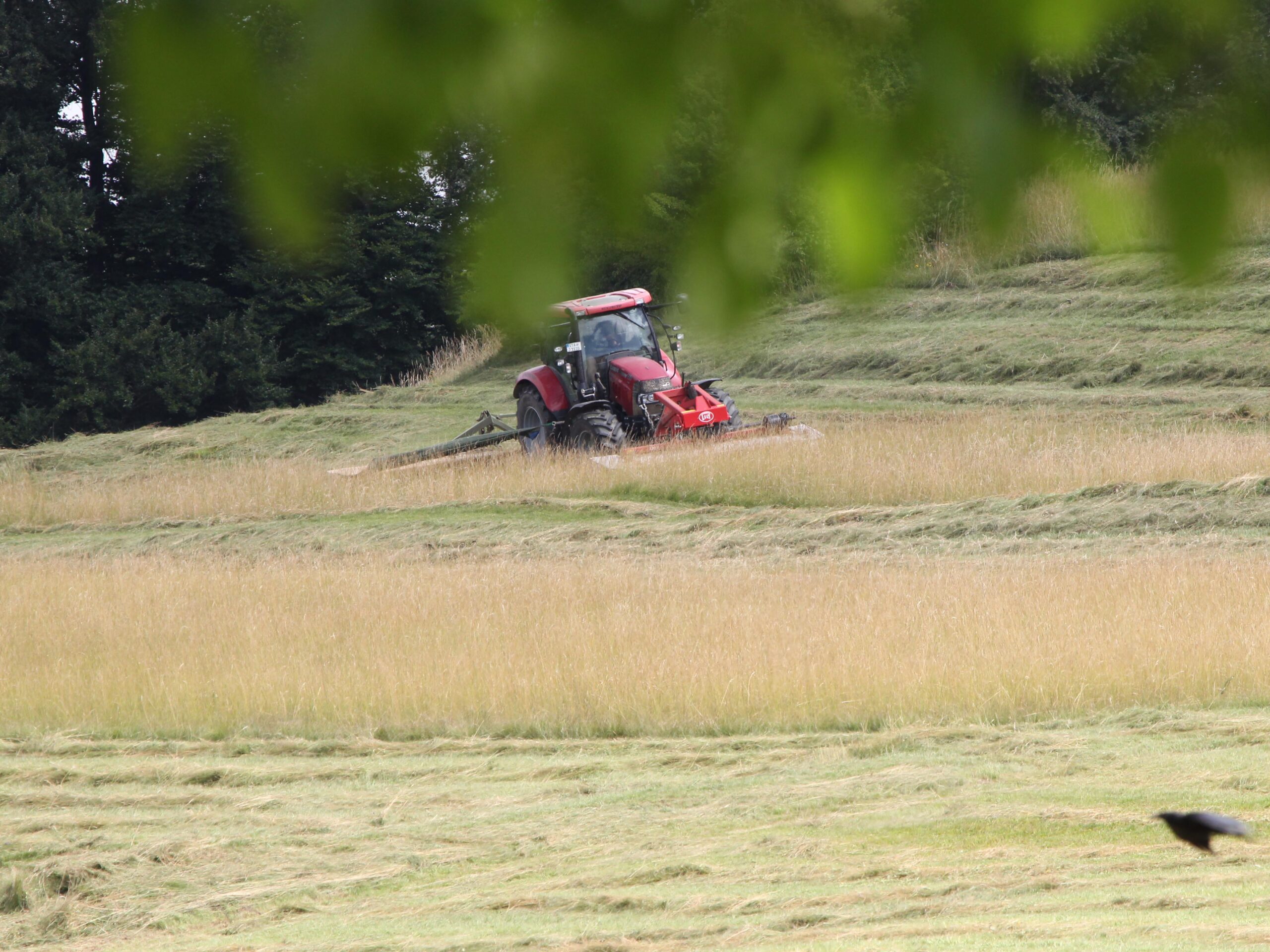 Der Bauer deckt den Tisch für den Greifvogel: Am Montag wurde dieser Jäger über dem Königsberg gesichtet, als der Bauer dem 2,8 Hektar großen Westhang in Breitbrunn die jährliche Vollrasur bescherte. Der Greifer, nach Beobachtungen von Anwohnern vielleicht ein Rotmilan, hatte endlich freie Sicht auf die Mäuse, die bis Juli im meterhohen Gras ein unbeschwertes Leben führen.