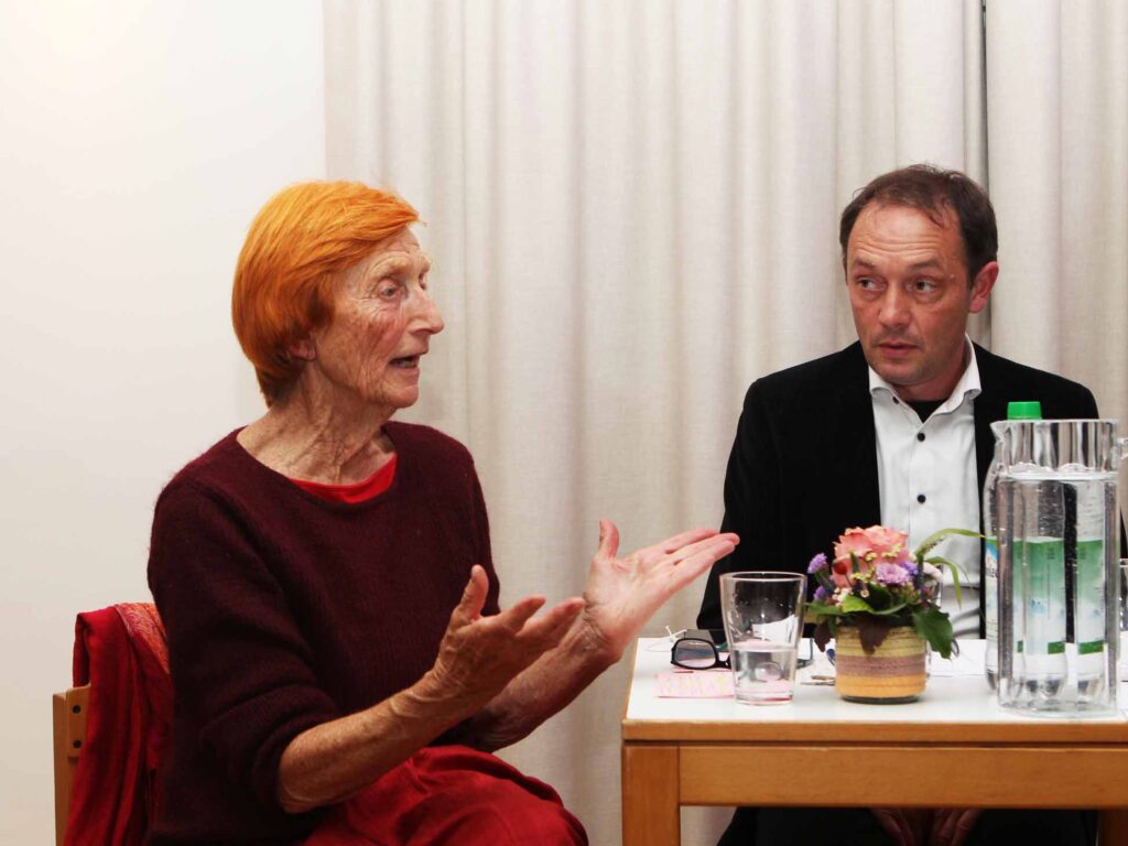 Ruth Paulig gilt als eine der Gründungsfiguren der Grünen – schließlich wurde im Kreis Starnberg der Name „die Grünen“ erfunden. Bei der ersten Landtagswahl 74 erreichte die Anti-Atom-Partei 1,7 Prozent, aber dann kamen Wackersdorf und Tschernobil, und bald saßen die Grünen im Maximilianeum. Paulig erzählte von den historischen Errungenschaften ihres Diskussionspartners Trittin, der in 100 Tagen den Atomausstieg auf den Weg brachte und mit dem neuen Dosenpfand „die mittelständischen Brauereien gerettet hat“. Trittin verpasste dem bayerischen Ministerpräsidenten gleich noch eine Watschn: „Wenn Kosten für zuviel produzierten Strom durch Erneuerbare anfallen, dann nicht wegen der norddeutschen Windkraft, sondern wegen des überschüssigen Stroms aus bayerischen PV-Anlagen.“