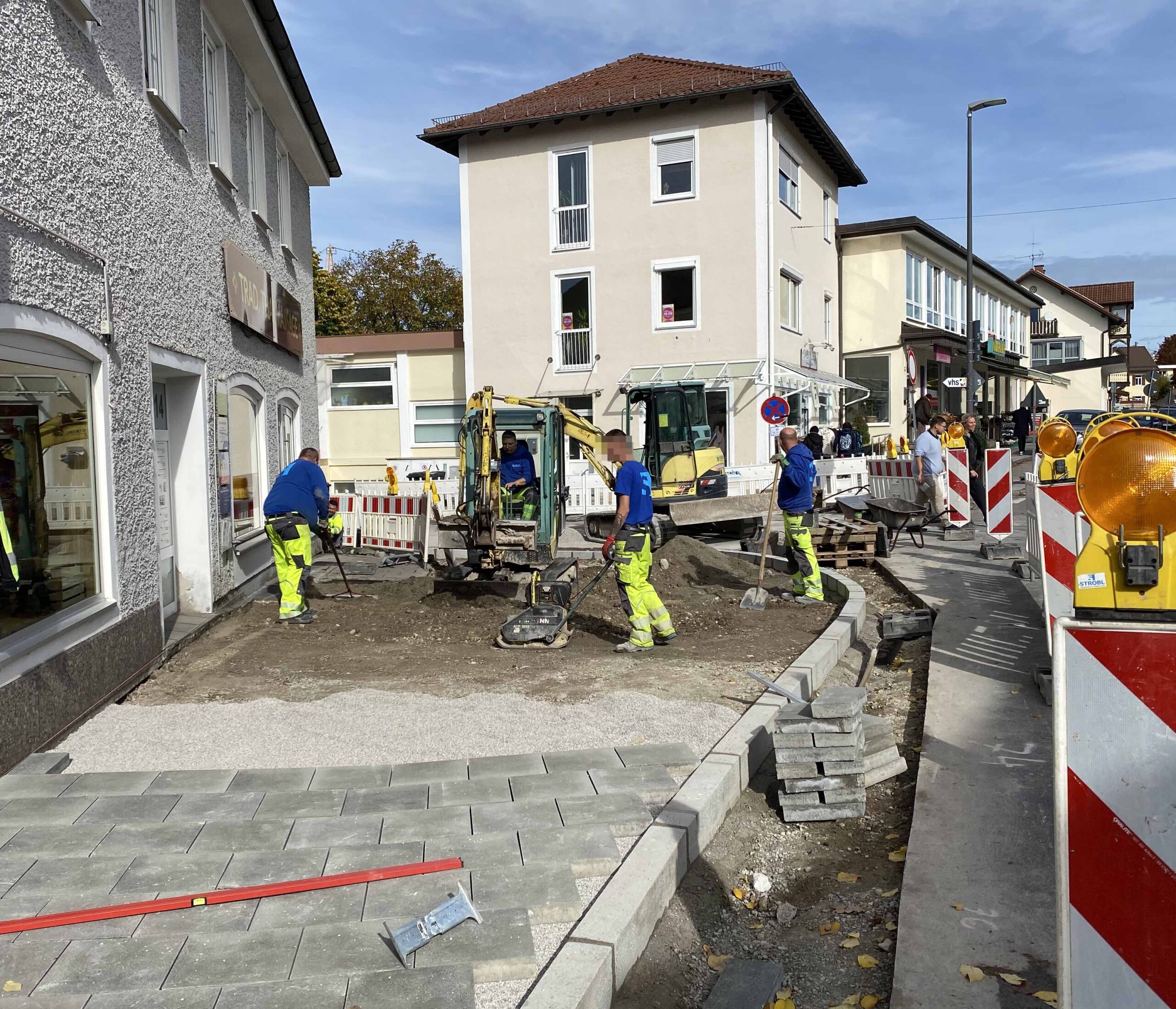 Auf dem Weg soll künftig ein Baum wachsen, eine Parkbank soll müden Shopping Queens, schlappen Andechs-Pilgern und ängstlichen Fußgängern als Rastplatz dienen. Die Fahrbahn nahe der Engstelle am Sportgeschäft wird nun schmaler. Sinn der Maßnahme: Die Fußgängerstrecke über die Mühlfelder Straße wird kürzer und damit – theoretisch – ungefährlicher.