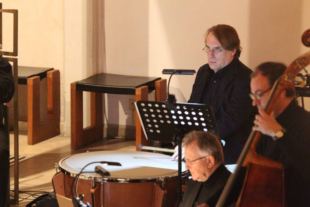 Der große Auftritt für die Pauken: Für Andreas Langanki gab’s im Dona nobis pacem viel zu tun. Neben ihm Ludwig Leininger am Kontrabass und Anton Ludwig Pfeil am Orgelcontinuo