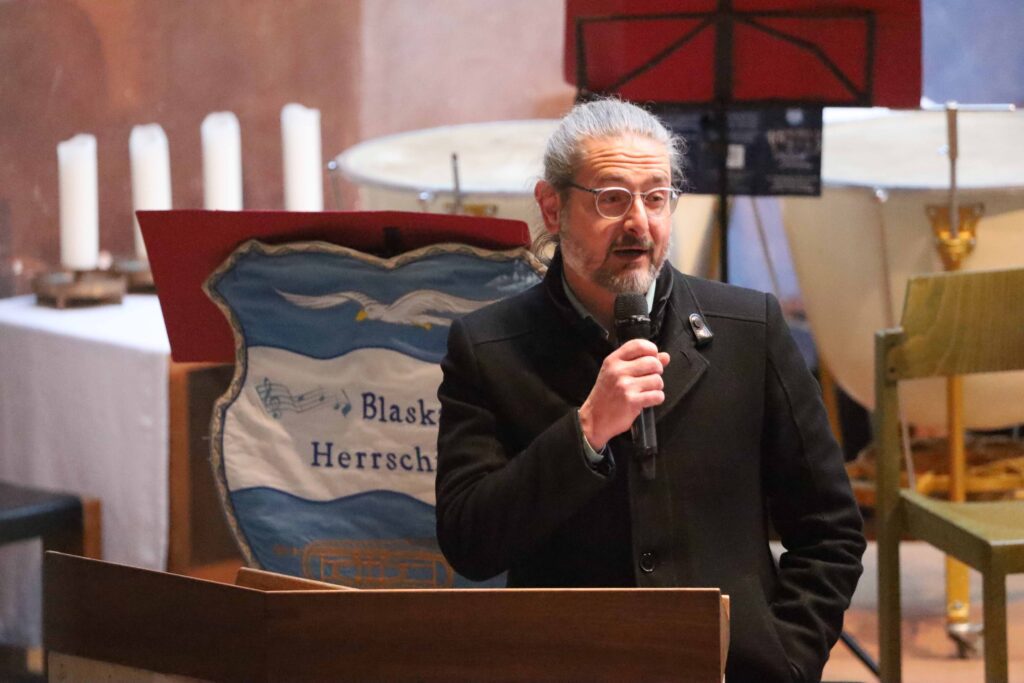 Der Pfarrer der Nikolauskirche, Simon Rapp, hatte in seinen Begrüßungsworten die gute Laune schon mal geweckt: „Man könnte neidisch werden“, meinte beim Blick auf (s)ein volles Haus, „die Blaskapelle hat offensichtlich eine größere Fangemeinde.“