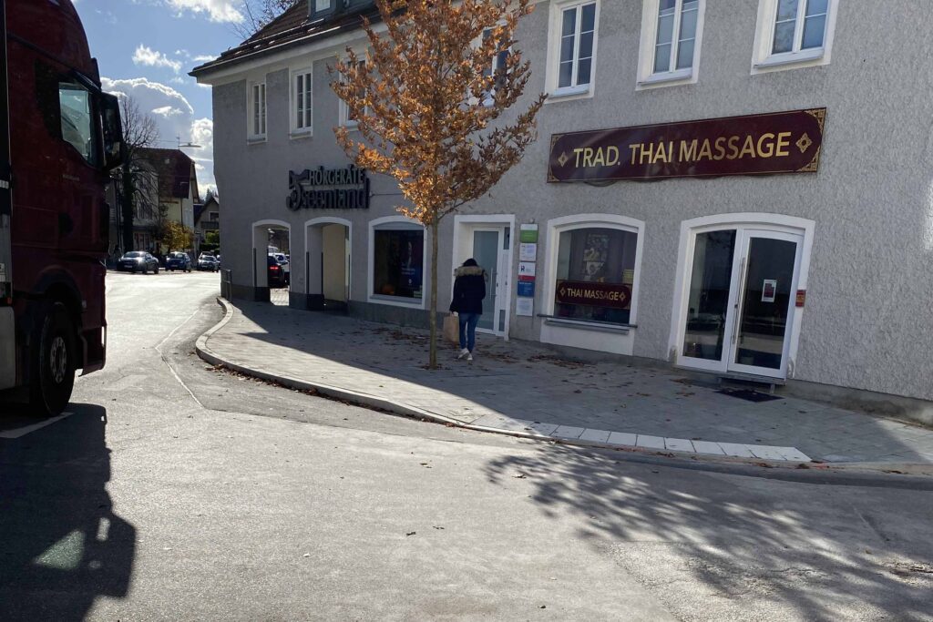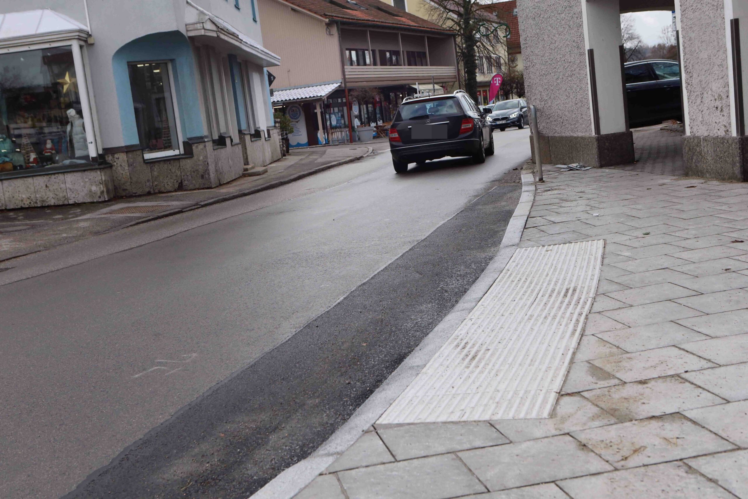 Ein guter Rat fürs Rathaus: Höre auf den Beirat: Auf besonderen Wunsch des Senioren- und des Inklusionsbeirats musste die Straßenbaufirma an der neu gestalteten Engstelle Mühlfelder Ecke Kienbachstraße noch einmal nacharbeiten. Der Bordstein an der „Thaimassage“ war den Beiräten zu hoch. Um auch Rollstuhl- und Rollatorfahrerinnen und -fahrern den Weg über die dort nur sieben Meter breite Mühlfelder zu ermöglichen, hat die Firma nun eine weiße, geriffelte schräge Ebene geschaffen. Der Bordstein war vorher genau zehn Zentimeter hoch, mutmaßlich also normgerecht. Bordsteine an der Kienbachstraße sind sogar 11 Zentimeter hoch.