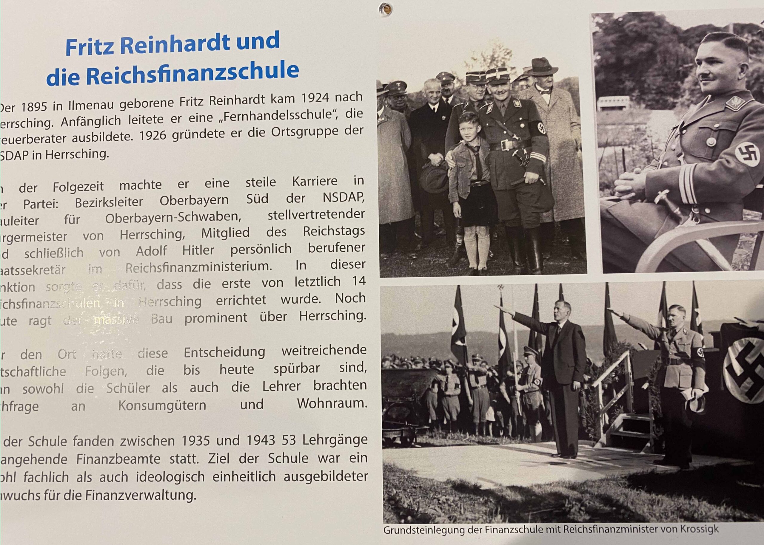 Die braune Vergangenheit Herrschings bringt die Vorbereitungen zum Jubelfest „1250 Jahre Herrsching“ in Nöte. Der Festkalender enthält Bilder, auf dem Nazi-Funktionäre bei der Grundsteinlegung der Finanzschule den Hitlergruß zeigen. Gemeinderat Uli Sigl (SPD) hatte in einer Anfrage im Gemeinderat dieses Bild mit dem Bemühen Herrschings, NS-belastete Straßennamen zu ändern, in Verbindung gebracht. Er verstehe nicht, sagte Sigl sinngemäß, dass man Straßennamen umbenennen wolle und solche Bilder im Festkalender zeige. Wie der Vorsitzende des Orga-Vereins, Ludwig Darchinger, herrsching.online mitteilte, haben Vereinsvorstände des Jubiläumsvereins nun beschlossen, das Blatt im Kalender auszutauschen gegen unverfänglichere Fotos. Darchinger betonte herrsching.online gegenüber, er sei gegen einen Austausch, weil die Bilder Zeitdokumente seien und zeigten, dass das damals „keine gute Zeit war“. Mit dem Komplex der Straßenumbenennungen hätten die Fotos nichts zu tun. Man habe aber dem Druck einiger Leute nachgegeben, die sich über die Kalenderseite ereifert hätten. Die Gemeindearchivarin Dr. Friederike Hellerer sagte herrsching.online, dass sie nicht über den Austausch der Seite informiert worden sei.