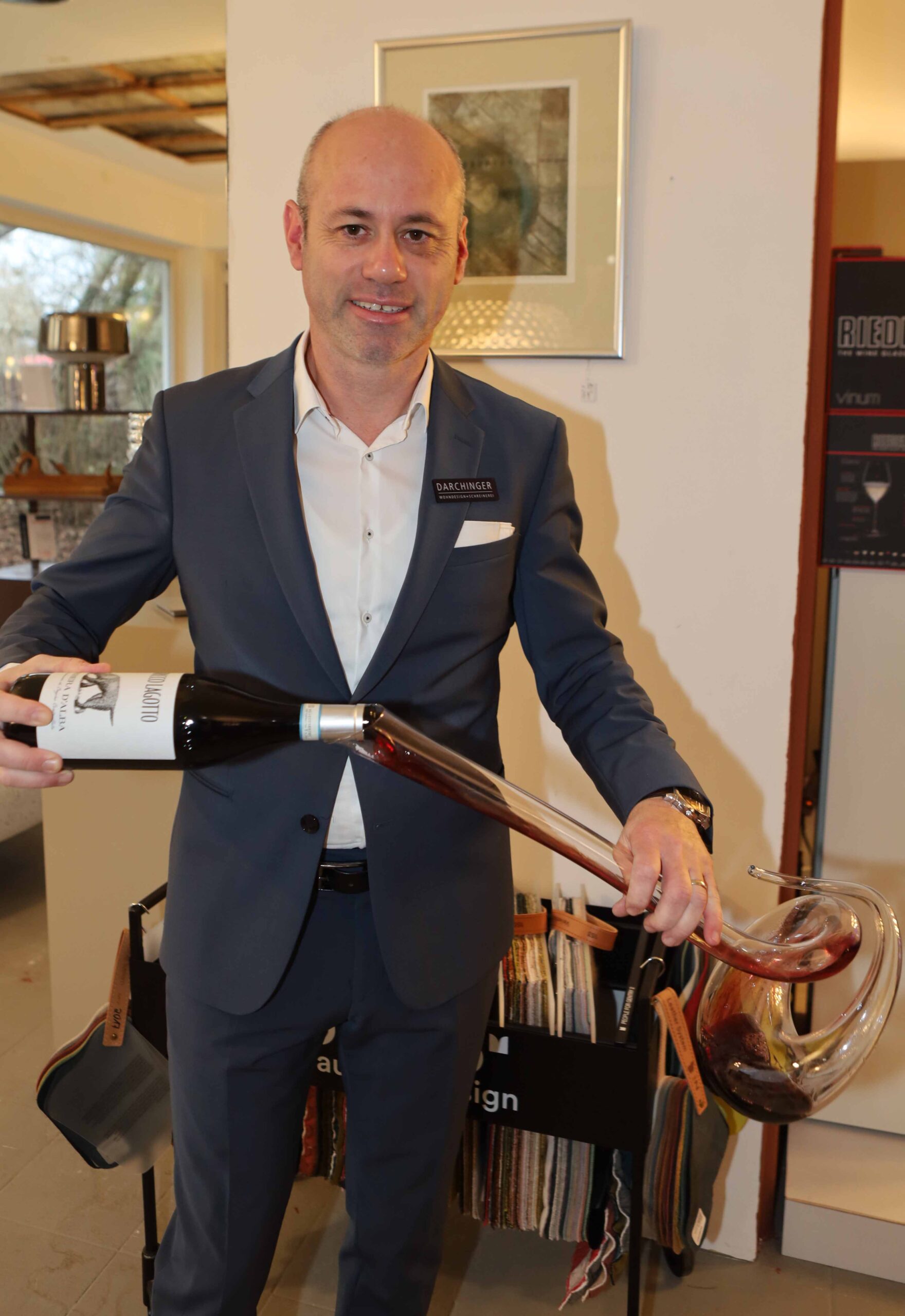 Bücher? Liest er nicht mehr. Krawatten? Trägt er nicht mehr. Edler Füller für die Vertragsabschlüsse? Braucht er nicht mehr. Was also schenkt man diesem Mann? Vielleicht einen Dekanter, der den feinen Roten durch ein Labyrinth schleust und das ganze Aroma des Chateau Lafite Rothschild entwickelt. Zudem portioniert die Gefäß-Skulptur die Weinmenge. Gesehen bei Möbel Darchinger. Kostet so um die 300 Euro. Das ist billiger als die Flasche Rothschild. Also, nicht dass Sie uns für Snobs halten, wir trinken Wein direkt aus Zweiliterflaschen. Mit abnehmendem Füllstand kommt da auch genügend Sauerstoff dran.