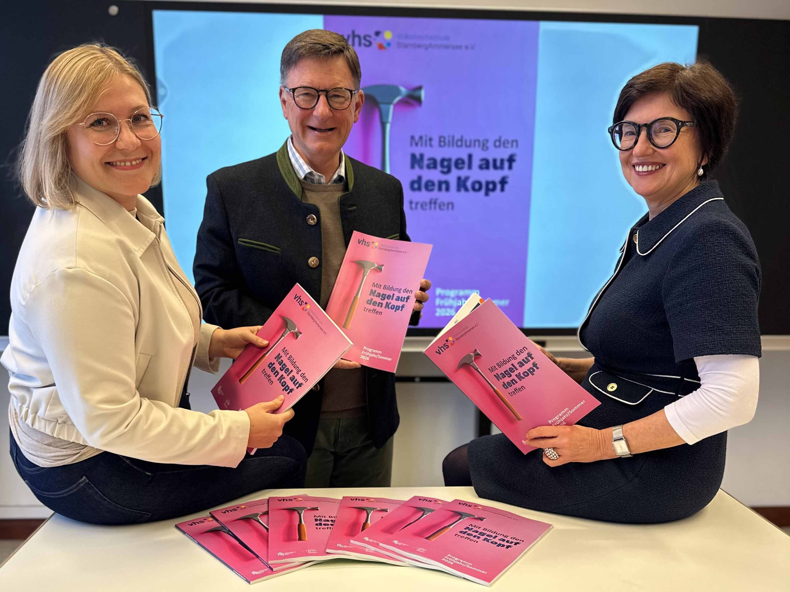 Intelligenz und Wissensdurst sind die Ressourcen der Volkshochschule. Jetzt kommt auch noch die „künstliche“ Intelligenz ins Spiel: 847 Kurse stehen im neuen Frühjahrs- und Sommerprogramm der Volkshochschule StarnbergAmmersee zur Auswahl, darunter 238 neue Kurse und 153 Online-Kurse. Im Jahr 2026 werden Trendtechnologien wie Künstliche Intelligenz kritisch und kreativ vermittelt. Dabei liegt ein Fokus auf der Stärkung der digitalen Souveränität. Das Thema Resilienz als „Widerstandsfähigkeit gegenüber Herausforderungen des Alltags“ wird besonders im aktuellen Kursprogramm berücksichtigt, so die Vorständin Christine Loibl. Bildung sei schließlich ein Schlüssel zu einem selbstbestimmten Leben, betont Lisa Aulinger als stellvertretende Vorständin. Tim Weidner, Aufsichtsratsvorsitzender der vhs, hebt dabei die Chancen von Bildung und Prävention hervor. „Wir wollen, dass unsere Kursteilnehmer fit durch den Alltag und gut durch Krisen kommen.“