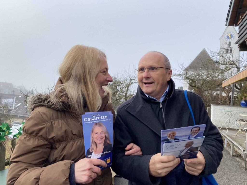 Brreitbrunn, 31. Januar: Der Andere könnte ja auch mal Recht haben, sagte die Grünen-Chefin Katharina Schulze auf einer Herrschinger Wahlkampfveranstaltung. Das hat dann die Bürgermeister-Kandidatin Karin Casaretto gleich mal ausprobiert und ließ sich für herrsching.online mit dem amtierenden Bürgermeister Christian Schiller ablichten. Eigentlich hatten wir mit einer Abfuhr gerechnet, als wir beiden unseren Wunsch vorgetragen hatten – und siehe da: Casaretto hakte sich gleich bei ihrem Mitbewerber unter, fragte aufgeräumt nach den Strapazen des Wahlkampfs und tauschte sich dann mit Schiller über die Wein-Präferenzen aus. Beide mögen trockene Weißweine. Dass der Wahlkampf bei beiden auch auf die Hüften geht, räumten Schiller wie Casaretto freimütig ein. Koalitionsverhandlungen stehen aber nicht an, vielleicht aber ein gemeinsames Interview für herrsching.online.