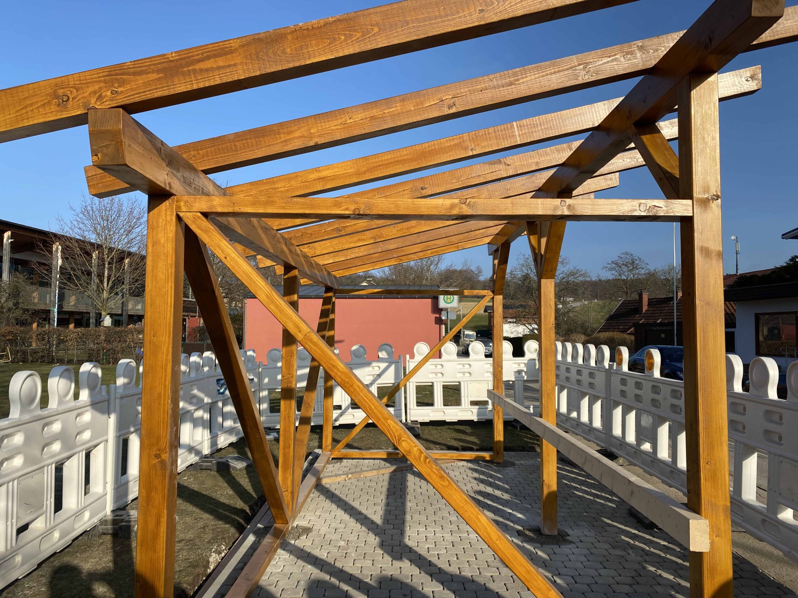 Warum teure Baufirmen beauftragen, wenn es die Expertise im Hause gibt. Der gemeindliche Bauhof stellt zur Zeit ein Wartehäuschen an der Schulstraße in Breitbrunn auf, um Schülern wie Eltern beim Warten auf den Schulbus vor Wind und Wetter zu schützen. Den Gemeindehaushalt belastet der Unterstand kaum – nur die Materialkosten fallen an. Dass die Männer des Bauhofs ein kleines hölzernes Schmuckstück bauen können, haben sie schon in Widdersberg bewiesen. Fertig werden soll das „Wart a Weil“ in der kommenden Woche werden – zu spät für einen Wahlkampfauftritt. Wenn man das Häuschen noch drehen oder die Rückwand hochklappen könnte, gäbe man das Wartehäuschen auch eine schmucke Tribune für den Bolzplatz.