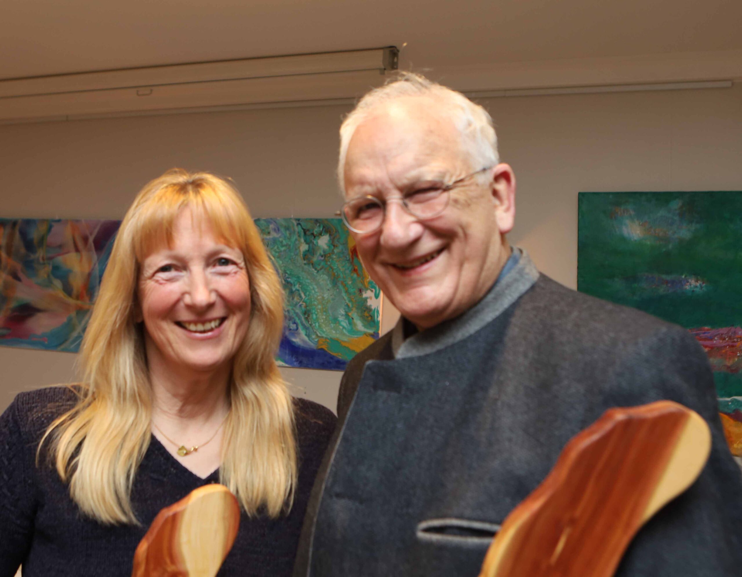 42 Jahre Gemeinderatserfahrung sind auf diesem Foto versammelt. Der ehemalige Zweite Bürgermeister Hans-Jürgen Böckelmann und Fraktionssprecherin Anke Rasmussen haben sich auf der grünen After-Poll-Party aus der Fraktion verabschiedet: Böckelmann saß von 2002 bis 2026 am Ratstisch für die Grünen und diente der Gemeinde sogar als Zweiter Bürgermeister. Die Grünen-Fraktion war 2002 ein kleines Häuflein mit drei Mitgliedern – in der letzten Legislaturperiode kamen sogar sieben Rätinnen und Räte über die grüne Liste ins Rathaus. Anke Rasmussen blickt auf 18 Jahre Ratserfahrung zurück und ist sich im Rückblick sicher: „Ja, ich bereue nichts, die schönen Erlebnisse haben deutlich überwogen.“ Als Erinnerung bekamen sie ein Brotzeitbrett in den Umrissen des Ammersees.