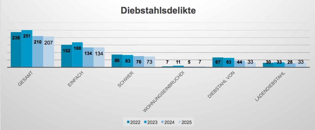 Gegen 442 Männer und Frauen wurde 2025 ein Ermittlungsverfahren eingeleitet – darunter waren 172 mögliche Straftäter ohne deutschen Pass, das sind immerhin 39 Prozent. Allerdings handelt es sich dabei oft um „importierte Kriminalität“, also ambulante Straftäter. Und knapp fünf Prozent der aktenkundigen Täter waren jünger als 14 Jahre – und damit strafunmündig. Allerdings kümmert sich anschließend oft das Jugendamt um diese Krimi-Kids.