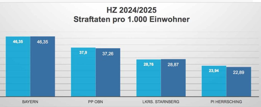 Dass die Herrschinger, Inninger, Seefelder und Wörthseer Bürgerinnen und Bürger wenig kriminelle Neigungen haben, lässt sich an den Straftaten pro 1000 Einwohnern ablesen: Während 46 von tausend Bayern im letzten Jahr aktenkundig wurden, sind es in Herrsching und Umgebung nur 22,9 Bürger – im ganzen Kreis STA liegt die Zahl bei 28,9 Promille. Wir sind also noch etwas braver als der Rest des Landkreises.